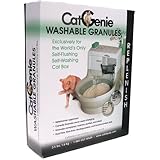 Replenish your supply of CatGenie Washable Granules whenever the level falls below the line on the bowl of the CatGenie Self-Washing Self-Flushing Cat Box. Granules never need to be replaced, just refilled occasionally. Cat-safe Granules are made of dust-free, non-toxic combination of natural and synthetic biodegradable materials that degrade in your sewer or septic system within 9 months. Each box lasts 4 to 6 months, depending on how many cats use the CatGenie box.