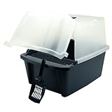 The IRIS Covered Litter Panwith Split Top makes cleaning up after your cat a snap. These litter boxes are hooded to provide privacy for your pet and protect the flooring around the litter box. The split top opening allows for easier access and cleaning. This litter box has a removable swing door, litter scoop and paw cleaning grate.Deep design pan 15" W x 18 7/8" L x 11 11/16" H keeps litter in and dirt out. The pan comes has a convenient handle.Uses standard litter pan liners