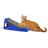 This attractive cat scratcher sits at a comfortable angle that appeals to cats who want to scratch! With their scratching satisfied on the durable carpet, cats can move on to a great round of play with the Pom Pom toy that is included with this unique cat product.